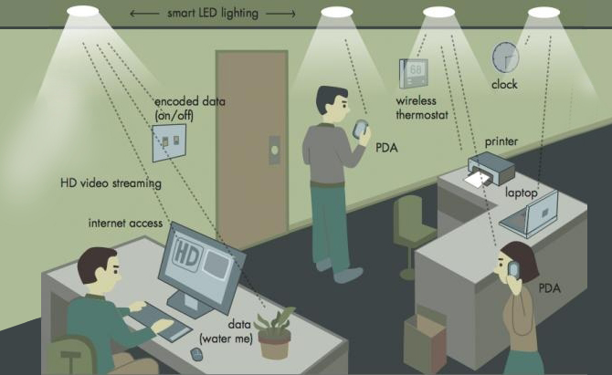 Ezt úgy kell elképzelni, mint egy rendkívül gyors kapcsolót, amely változtatja a fényforrás fényerősségét, ezzel lehetővé teszi nagy mennyiségű bináris adat továbbítását. Az adatátvitel sebessége attól függ, hogy mekkora a másodpercenkénti kapcsolások száma. A német Fraunhofer Heinrich Hertz Intézet azt állította, hogy laboratóriumi körülmények között sikerült az 1 Gbit/s-os sebességet megvalósítani. Kínai tudósok pedig olyan eszköz mindennapos használatát valósították meg, melynek során egy LED fényforrás négy számítógéppel képes egyszerre kommunikálni, 150 Mbps sebességen.