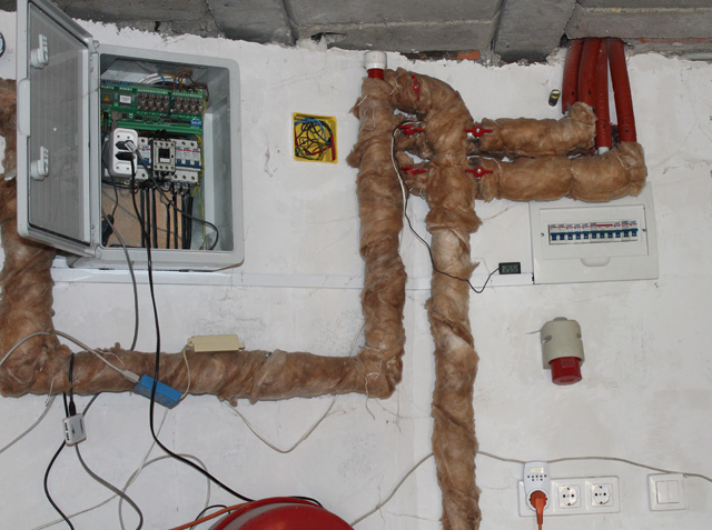 Az összeszerelés, összeállítás is a gyári ajánlásoknak megfelelően történt. A rendszert tekintve adott tehát egy GALAN márkájú kazán, kapcsolódik hozzá egy „tiltó” termosztát, amely nem engedi 70 °C fölé emelkedni a vízhőmérsékletet, hanem még ez előtt kikapcsolja a berendezést. Egészen a keringető szivattyúig műanyag csővel van szerelve a rendszer. Újabban ugyanis a gyártók a kazántestet egy 30x60 cm-es villanyszerelő – szigetelt – dobozban javasolják elhelyezni, valamint a kazán csőrendszerbe való bekötését hőálló műanyaggal indítani. A tahitótfalui családi házban ugyan nincs az ionkazán szigetelt dobozban, viszont a gyári ajánlásnak megfelelően a kazán felett 60 cm-re van az első fém könyök. Ettől még a víz, amibe a fázist vezettük, az áramot is vezetni fogja. Ha dobozba lenne zárva a kazántest, az elszigetelése akkor sem lenne teljes, nem küszöböli ki az érintésvédelmi aggályokat. Érintésvédelmi szempontból, mivel a fi relét a működésből eredő anomáliák miatt kizárhatjuk, a biztonsági leválasztó transzformátor jöhetne szóba, ennek a beépítése viszont jelentősen, 2-3-szorosára is megdrágítaná az egyébként sem olcsó csőkazán bekerülési költségét.