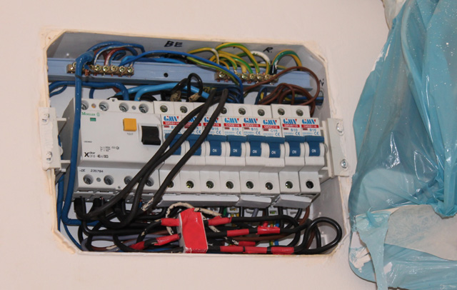 Mérésünket a hálózati viszonyok szemrevételezésével kezdtük. A villanyórától a nappali áram három fázisa, a nullvezető (N), és a védőföld (PE) érkezik be a lakásba. Itt a nullvezető kettéválik, egyik részét bekötötték az érintésvédelmi relébe (RCD), a „nappali” áram három fázisával egyetemben. A nulla másik része az áram-védőkapcsoló megkerülésével megy le a vezérelt áram három fázisával a pincébe, ahol csatlakoztatva van az ionkazánhoz. Azért volt szükség – a tulajdonos elmondása szerint – ily módon „kijátszani” a FI relét, mert ha be van kötve az áramkörbe, folyton „lever”, nem működtethető az ionkazán. És valóban, mi is meggyőződhettünk róla, amikor „éjszakai” áramról átkötöttük a szerkezetet „nappalira”, majd elindult a készülék, a relé azonnal leoldott.