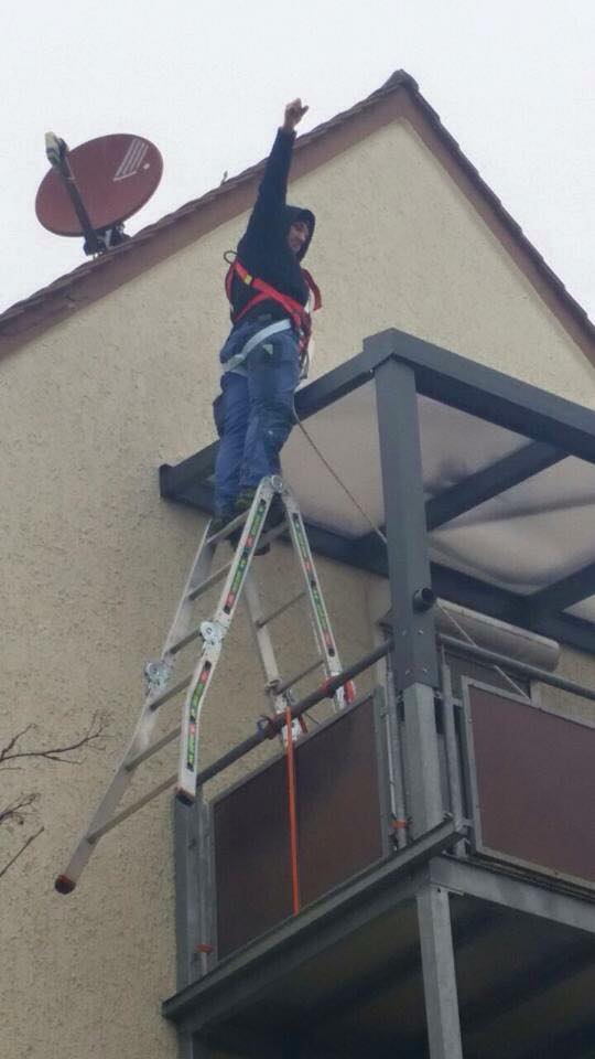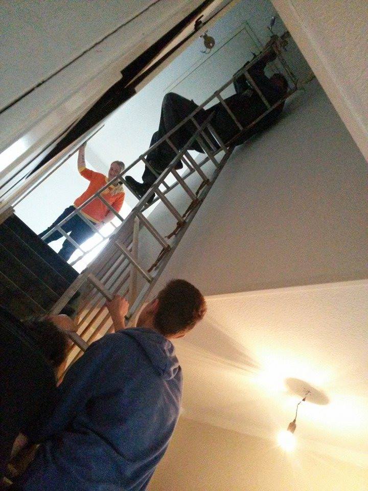 3. Az egylábú létrázás glettelő bajnoka: csak nehogy valaki feljöjjön a lépcsőn.