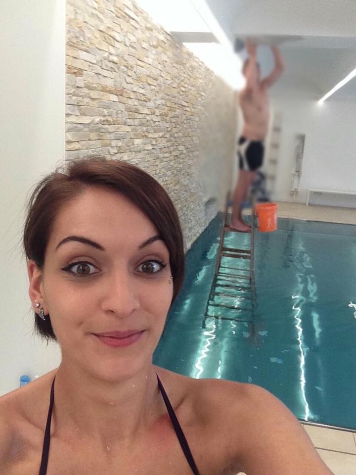9. Ezért a kis javításért tényleg kár lett volna leereszteni a medencét. Mindenesetre a fotók készítő hölgy sejti, hogy ez nem egy hétköznapi mutatvány.