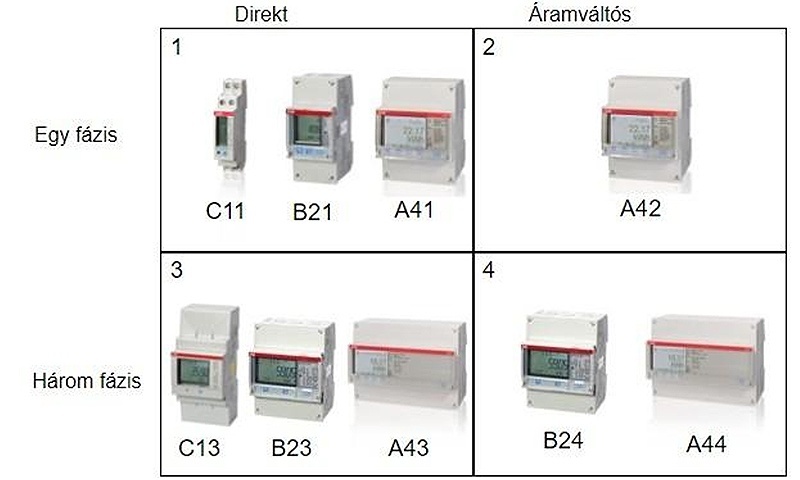 - direkt mérés 65 A-ig, vagy áramváltós mérés