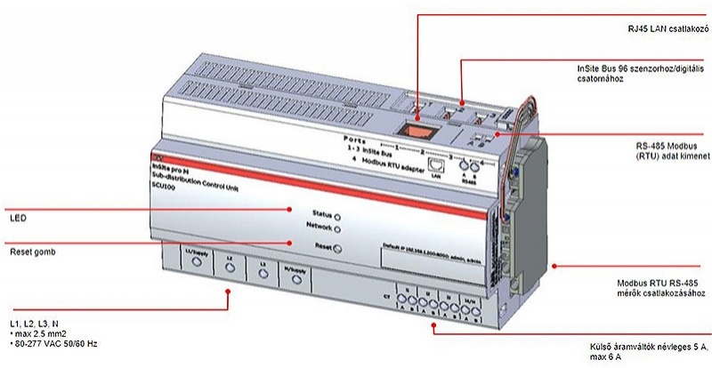 A rendszer „irányítóközpontja” az SCU100 egység képes akár 16 különböző energia- és teljesítménymérőből, 96 áramérzékelő és digitális csatorna segítségével egyidejűleg képes információkat gyűjteni. Ezen felül pedig összehasonlítja a tárolt értékeket időszakonként vagy eszközönként.