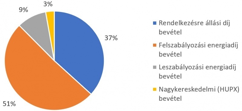 A bevételi oldal szimulációjából látható, hogy a legfontosabb tételek a Rendelkezésre Állási Díj (RÁD), és a Felszabályozási Energiadíj Bevétel.