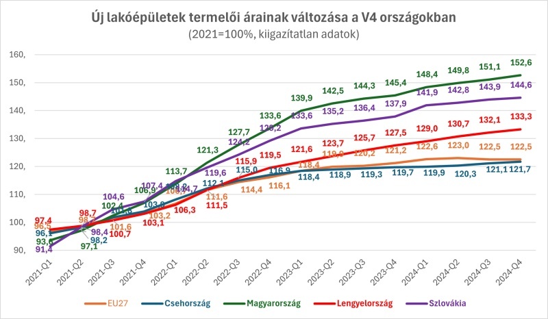 10. ábra: új lakóépületek termelői árának változása a visegrádi országokban Forrás: EUROSTAT
