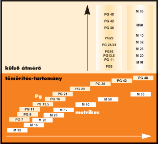 A Németországban és néhány további országban az elmúlt században általánosan elterjedt Pg (Panzergewinde = páncélmenet) méretezési rendszer helyére az ezredfordulót követően a metrikus rendszer került bevezetésre. Az átállás elsősorban tehát azokat a cégeket érintette, amelyek a német piac vonzáskörzetéből szerezték be a szerelési alapanyagokat. Olyan alapvető termékekről van szó, mint például az installációs csövek, tömszelencék és kábelbevezetések, kábel-összekötő dobozok, installációs dobozok. Ezen túlmenően változás történt az elosztószekrények, házi csatlakozó szekrények, kapcsos dobozok, kapcsolószekrények, tokozott kapcsoló- és szabályozó készülékek, illetve készülékházak területén is. A tömszelencék, csövek, házak átállásának alapja a EN 60423 számú nemzetközi metrikus méretszabvány. A kiemelendő információ az, hogy a Pg7-től Pg48-ig terjedő skálát az M12-től M63-ig terjedő metrikus méretsor pótolja. Az anyagok könnyebb beazonosítását, kezelését segíti elő az, hogy a 10 Pg-méret helyére csupán 8 metrikus méret áll. Ez azonban azt is magába foglalja, hogy újból egymáshoz kell rendelni a tömítés- és a névleges tömszelence-méreteket. Értelemszerűen a metrikus tömszelencék csak a metrikus méret szerint kialakított szekrénynyílásokba illeszkednek. Amennyiben valamely terméken régi Pg-méret szerinti nyílás található, akkor célszerű felkeresni a termék forgalmazóját, és az annak megfelelő Pg tömszelencét igényelni tőle.
