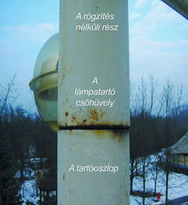 nélkül volt feltéve a kandeláber tartóoszlopának végére, és csak a rozsdásodástól