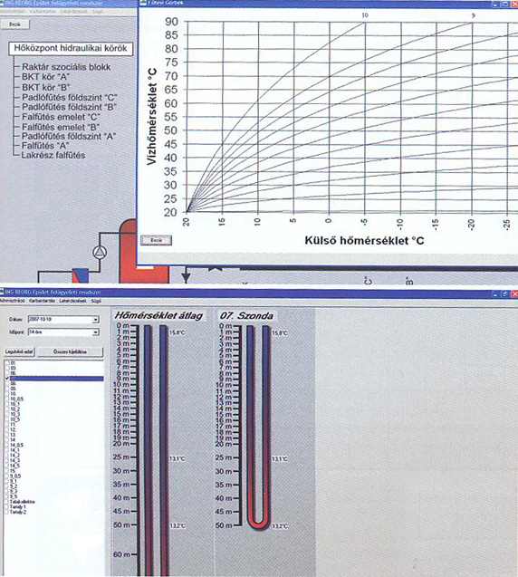 A 2. képen mutatjuk be az épületfelügyeleti rendszer által rögzített talajhőmérsékleti adatokat. A program segítségével látványosan összMsoNormal´tr bgcolor=ehasonlítható a különböző mélységekre jellemző hőmérsékleti értékek. Mindemellett a vizsgált talajszonda adatainak átlaga is rögtön megtekinthető.