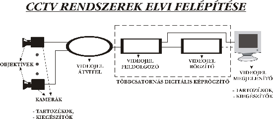 A CCTV rendszerek elvi felépítését szemlélteti az 1. ábra, mely bemutatja hogyan kapcsolódnak egymáshoz az összetevők.