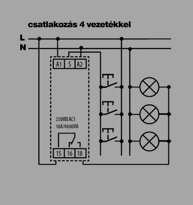 A mai lépcsőházi automatákkal rendszerint mindkét vezetékezési mód esetén kiválthatók az elromlott régi készülékek. Eltérés csupán annyi, hogy a potenciálmentes kontaktus közös pontjára is rá kell kötnünk egy állandó fázist (5. kép).