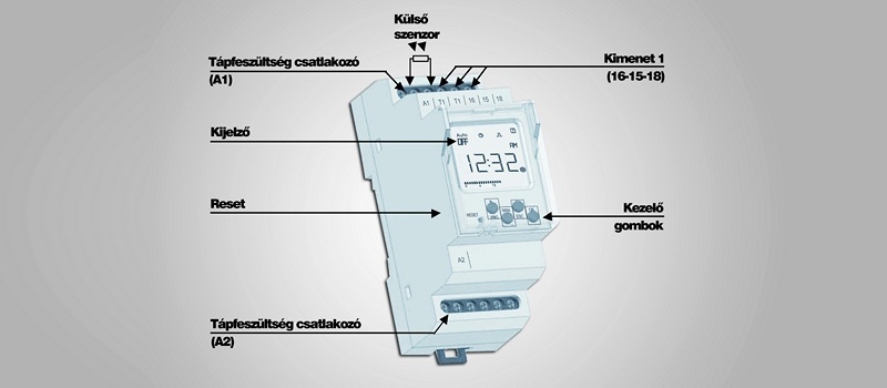Elsősorban kirakatvilágítási célokra kifejlesztett termék. Valójában e készülékek a heti digitális kapcsolóórák és a külső érzékelős alkonykapcsolók kombinációi. Ebből adódóan a kijelzőn beállíthatjuk, hogy hány Lux értéknél kapcsoljon be a kimenet és azt felülbírálhatjuk a hét minden napjára lebontva egy világítási időtartománnyal. Ezáltal könnyen beállíthatjuk, hogy az adott világítási csoport például hétköznap csak zárás után, hétvégén pedig egyáltalán ne működjön. A heti digitális kapcsolóórához hasonlóan gyakran megtalálhatjuk rajtuk a szabadság- vagy nyaralásprogram funkciókat.