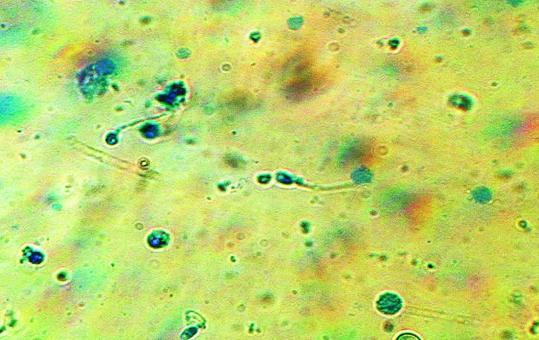 A szakirodalom áttekintése során számos alkalommal találkoztunk az EMF hímivarsejtekre gyakorolt hatásának vizsgálatával. Legtöbbjüket a mobiltelefonok sugárzásának modellezésével végezték el, ezért a fenti eredmények fényében fontosnak éreztük, hogy a kompakt izzók által kibocsátott sugárzás hatásait is tanulmányozzuk a hímivarsejteken. A sejteket fiziológiás sóoldatban hígítottuk, majd 3 órás expozíciónak tettük ki a mintákat. A már korábban alkalmazott vitális festés segítségével megfestettük, majd glicerinoldattal lassítottuk le mozgásukat a Bürker-kamrás számláláshoz. A 20 dBm értékű 3 órás EMF-terhelés következtében az életképtelen hímivarsejtek száma 22,5%-ra emelkedett, az életben maradt sejtek mozgása pedig számottevően lassult.