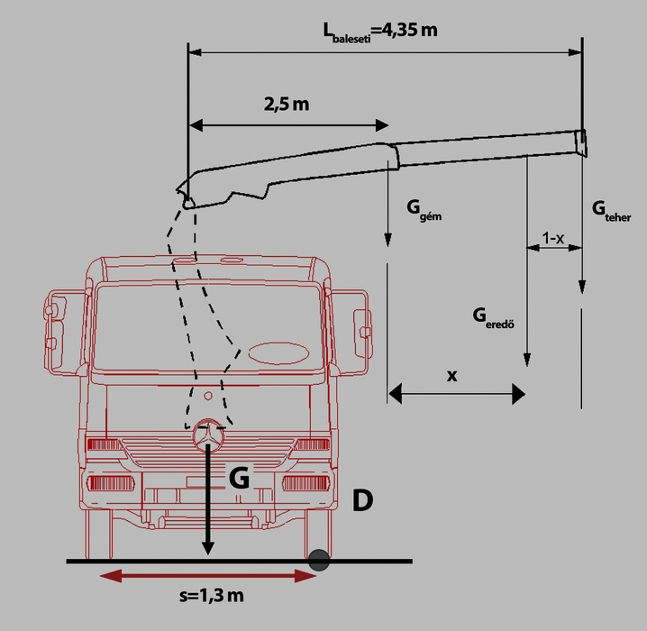 | 13. ábra: A billentő nyomatékszámítás adatai (baleseti helyzet) |