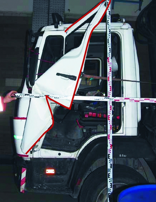 | 5. ábra: A tehergépkocsi bal oldali ajtajának maradandó deformációi |