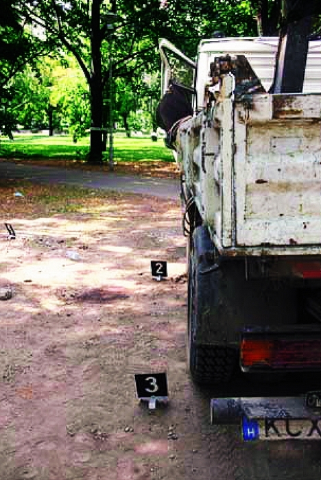 | 2. ábra: A tehergépkocsi vízszintes helyzetében hátra- hagyott nyomok fényképfelvételei |
