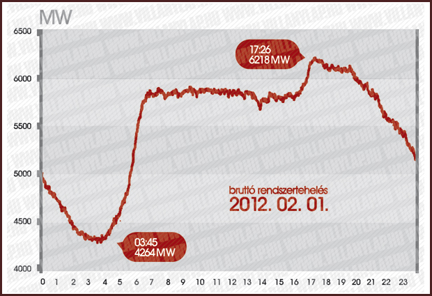A napi csúcsterhelés évszaktól függően sötétedéskor jelentkezik. A maximális és minimális terhelés aránya kb. 1,5-re tehető, ezt kell követni napi szinten a termeléssel. A téli és nyári csúcsterhelések között egyre inkább csökken a különbség, ami döntően a légkondicionáló berendezéseknek köszönhető. Amíg 2001-ben 1,3-szoros volt az arány a téli fogyasztás javára, 2011-re már minimálisra csökkent a különbség. A fogyasztást rengeteg tényező befolyásolja, például az időjárás, az évszakok, a munka- és szabadnapok, az iskolai tanrendek és az óraátállítás is. Amikor ennyi dolog van hatással a terhelésre, nagyon nehéz megmondani, hogy az óraátállítás pontosan mekkora változásért felelős. Egy munkanap-áthelyezés nem csak az adott napra, hanem az előtte és utána következő napokra is fogyasztáscsökkentő hatással van.