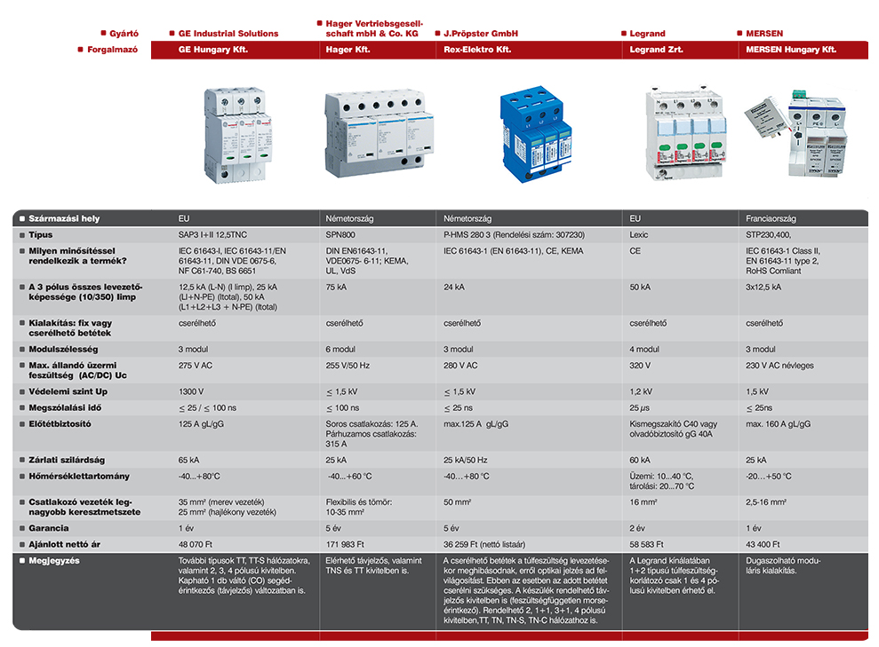 1+2 típusú (régebben: B+C fokozatú), 3 pólusú túlfeszültség-védelmi eszköz