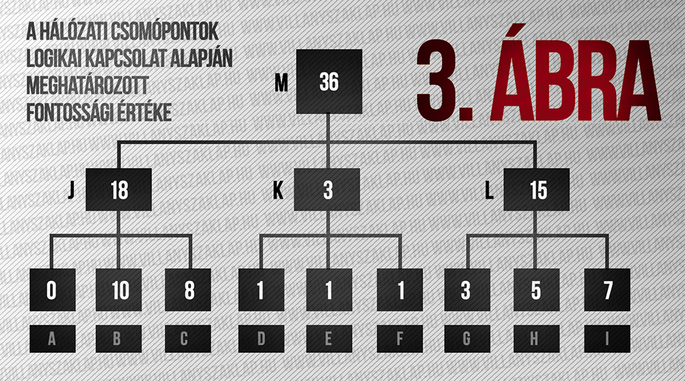 - Az egymással közvetlenül összekötött hálózati csomópontok logikai kapcsolatban állnak egymással (pl. az egyik csomópont működtethetősége feltételezi a másik működőképességét), és ez a logikai kapcsolat matematikai szabályok formájában vehető figyelembe a fontossági sorrend megállapításakor.