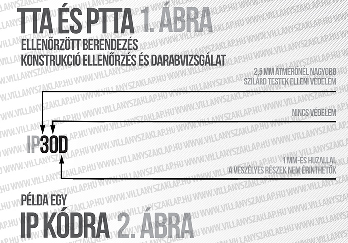 Az IP-védettséget jelző kód két számjegyből áll. Az első számjegye a szilárd tárgyak behatolása, illetve por behatolás elleni védelem szintjére, a második számjegy a burkolat víz behatolása elleni védettségi fokozatra utal (3. táblázat). Amennyiben a személyek érintése elleni védelem az adott burkolat esetén magasabb, mint az az első számjegyből következne, az esetben az IP-védettség jelzése kiegészülhet egy úgynevezett járulékos betűvel. Bizonyos esetekben, amikor csak a személyek védelmét kell figyelembe vennünk, akkor a számjegyek „X” betűkkel helyettesíthetők (pl. IPxxD). A betűjelek jelentése a következő: – A: kézfejjel történő érintés elleni védelem – B: védelem ujjal történő érintés ellen – C: szerszámmal való érintés elleni védelem – D: védelem huzallal történő érintés ellen
