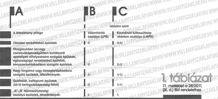 A hazai villámvédelem jogi szabályozásában mérföldkőnek számított a 2011. október 6-án hatályba lépett 28/2011 (IX. 6.) BM sz. rendelet (Országos Tűzvédelmi Szabályzat), amely előírta az MSZ EN 62305 számú szabványnak („új norma”) megfelelő villámvédelem létesítését. A rendelet a szabványt felülírva meghatároz különböző építményekre védelmi szinteket (LPS és LPMS - 1. táblázat), ugyanakkor pl. nem teszi kötelezővé villámvédelmi berendezés létesítését: