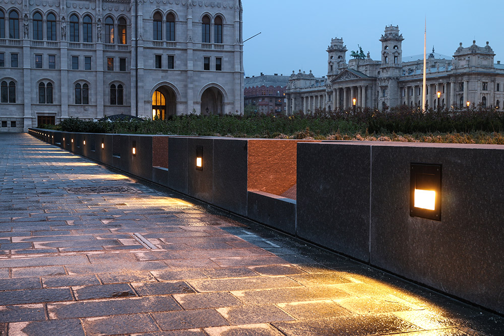 Az Országház előtti növénykazettákba épített, oldalfalba süllyeszthető lámpatestek olyan kis teljesítményűek, hogy nátriumlámpás változat nem jöhetett szóba. A 35 W-os fémhalogénlámpás világítótestek helyzetüknél és karakterüknél fogva eleve kétséges világítási eredményt prognosztizáltak. A későbbi, ugyanilyen pozíciókból az Országház homlokzatait világító nátriumlámpás fényvetők nyilván elnyomják majd a mostani berendezés szerény hatását, így létjogosultságuk bizonyára csak a díszvilágítás szüneteltetése idején lesz indokolható.