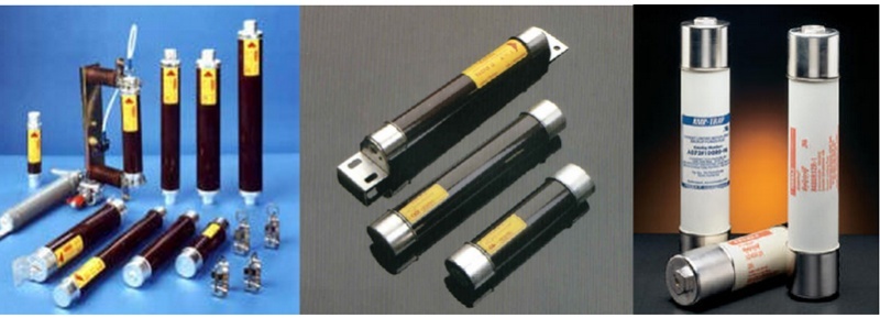 7. ábra példák az európai EN (eredetileg DIN), a britt BS és az amerikai UL szabvány szerinti középfeszültségű olvadóbetétekre