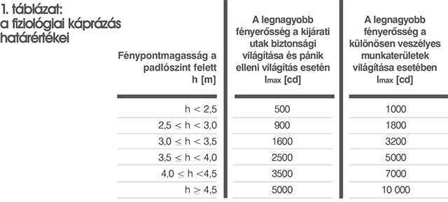 Egy lámpatest és annak háttere közötti nagy kontraszt káprázást okozhat. A szabvány utal a rontó káprázásra – fiziológiai káprázás –, amely megakadályozza vagy nehezíti az akadályok vagy jelzések felismerését. Mivel a lámpatestek nagy fénysűrűsége kápráztat, a káprázást a látótérben lévő lámpatestek fényerejének csökkentésével kell kis értéken tartani.