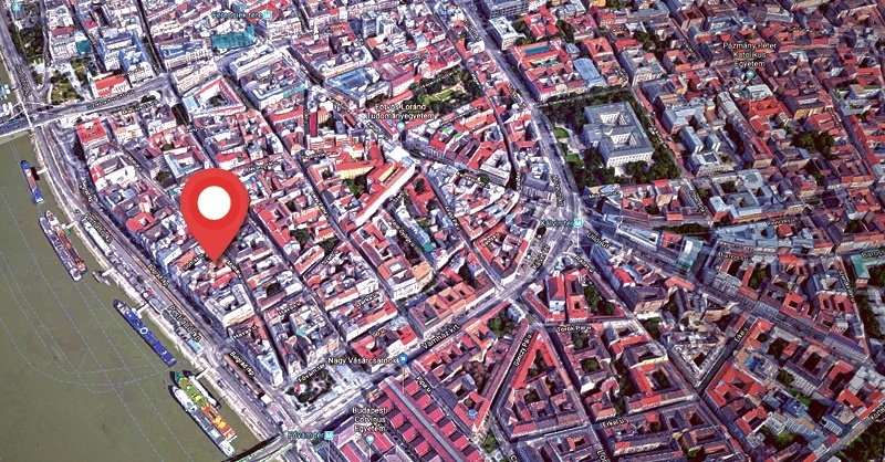 Budapest belvárosának egy részlete. A meglévő, szorosan egymás mellé épített épületeknél a „norma szerinti” villámvédelem követelményeinek teljesítése gyakran lehetetlen, a levezetők és a földelők elhelyezésének nehézségei miatt. Ezért a villámvédelem utólagos kialakítása vagy átalakítása számos kompromisszumot igényel. Ez a probléma minden sűrű beépítésű területet érinthet, legyen szó akár nagyváros központjáról, akár gyártelepről.