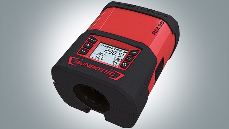 A Runpotec egyedülálló, új kábelhosszmérő-műszere praktikus kialakításának köszönhetően hatékony és gyors megoldást kínál 2–32 mm átmérőjű kábelek, kötelek, csövek vagy tömlők hosszának mérésére. Az RM35 tervezésénél első számú szempont volt a robusztus kialakítás és az egyszerű használhatóság. Az eszköz kifejezetten alkalmas építési területen való felhasználásra is: ütésálló, fröccsenő víz és por ellen védett.